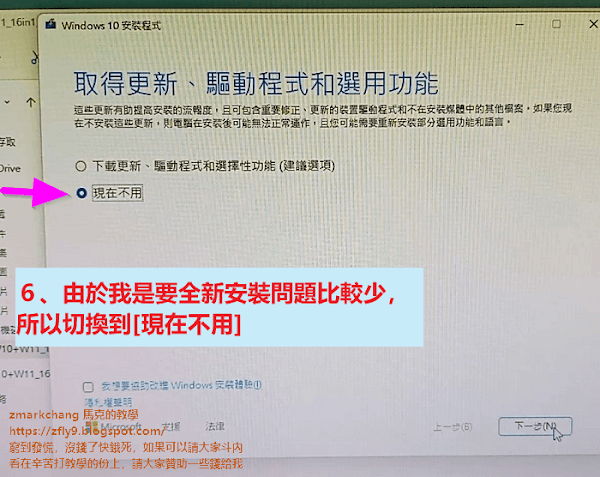 6、由於我是要全新安裝問題比較少,所以切換到[現在不用]
