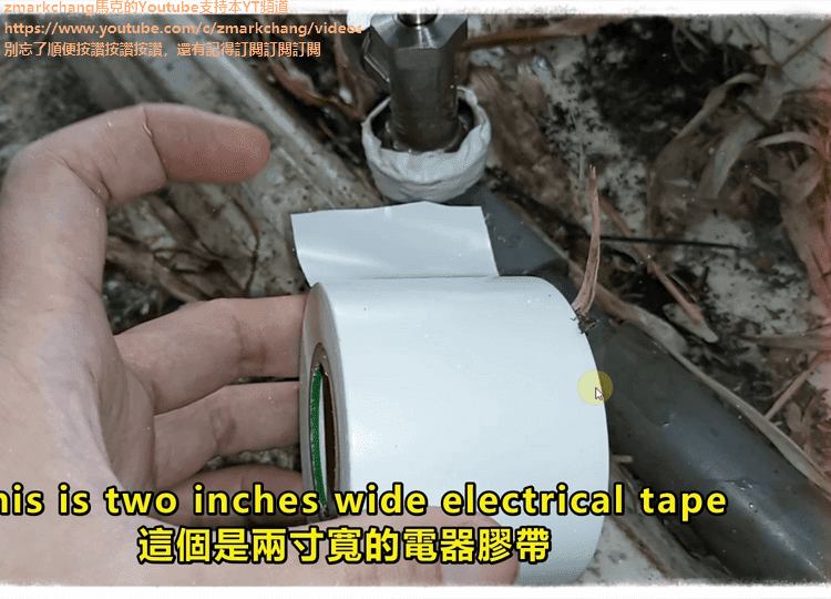 段落 09:16 用[2寸寬的電氣膠帶]將漏水的地方包5圈